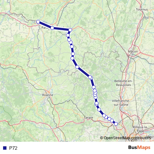 The first stop of the P72 bus route is Lozanne and the last stop is Digoin. P72 is operational during everyday.