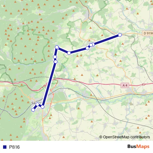 The first stop of the P816 bus route is Obermodern and the last stop is Saverne Haut Barr. P816 is operational during on weekdays.