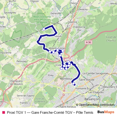 Bus Proxi TGV 1 - Gare Franche-Comté TGV – Pôle Temis: Full Schedule in Besancon