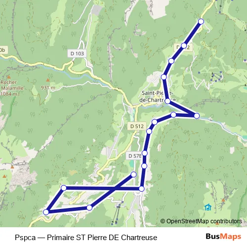 The first stop of the Pspca bus route is Champs Massot and the last stop is Ecole de Saint-Hugues. Pspca (Primaire ST Pierre DE Chartreuse) is operational during everyday.