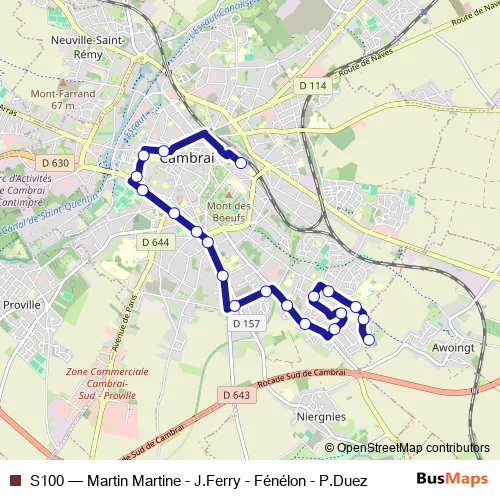Bus S100 - Martin Martine - J.Ferry - Fénélon - P.Duez: Full Schedule in Cambrai