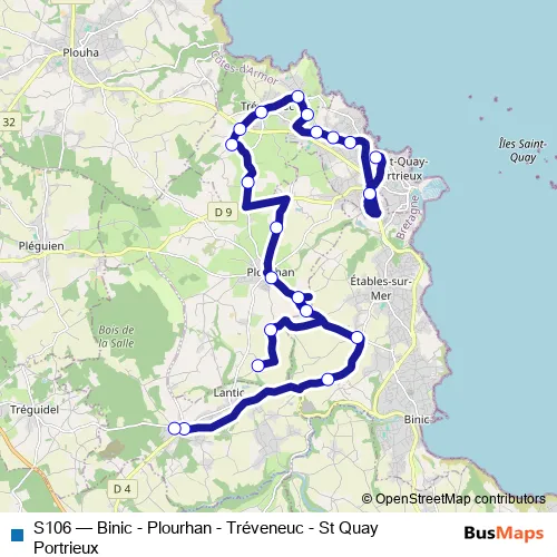 Click here to view the nearest S106 - Binic - Plourhan - Tréveneuc - St Quay Portrieux bus stop.