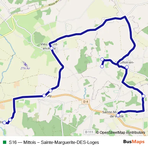 The first stop of the S16 bus route is Mittois: Eglise and the last stop is STE Marguerite DE Viette: ecole. S16 (Mittois – Sainte-Marguerite-DES-Loges) is operational during everyday.