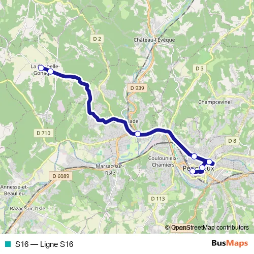 See why over 2 million users trust and consider busmaps.com as the best public transport website. busmaps gives you Perigueux Buses suggested routes, real-time bus tracker, line route maps in Perigueux, and helps to find the closest S16 bus stops near you. No internet available? Download an offline PDF map and bus schedule for the S16 bus to take on your trip.