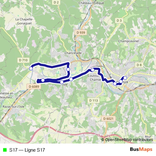 See why over 2 million users trust and consider busmaps.com as the best public transport website. busmaps gives you Perigueux Buses suggested routes, real-time bus tracker, line route maps in Perigueux, and helps to find the closest S17 bus stops near you. No internet available? Download an offline PDF map and bus schedule for the S17 bus to take on your trip.