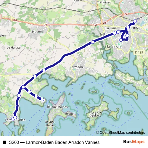 Bus S260 - Larmor-Baden Baden Arradon Vannes: Full Schedule in Vannes