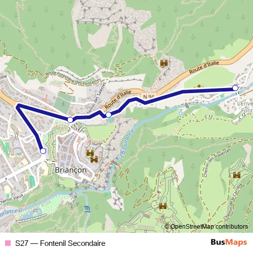 The first stop of the S27 bus route is Briancon- Porte D'Embrun and the last stop is Briancon- Place DE Fontenil. S27 (Fontenil Secondaire) is operational during on weekdays.