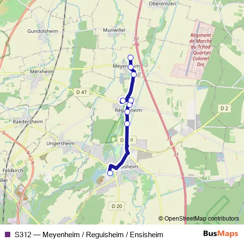 Click here to view the nearest S312 - Meyenheim / Reguisheim / Ensisheim bus stop.