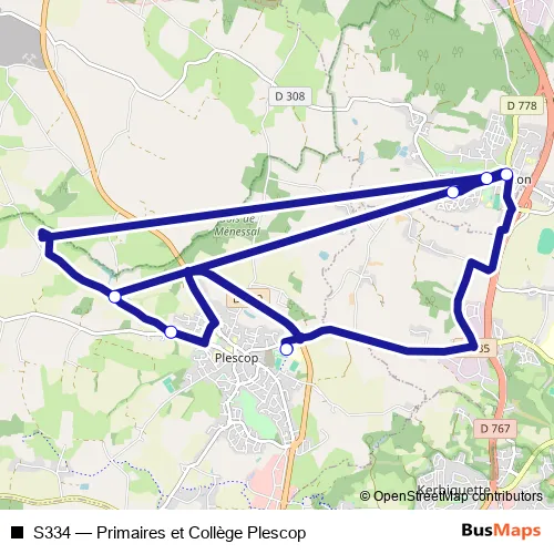 Click here to view the nearest S334 - Primaires et Collège Plescop bus stop.
