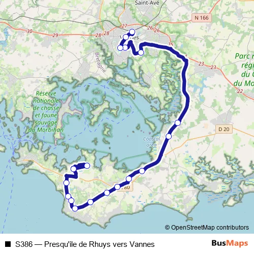 Click here to view the nearest S386 - Presqu'ile de Rhuys vers Vannes bus stop.