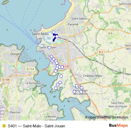 See why over 2 million users trust and consider busmaps.com as the best public transport website. busmaps gives you Saint-Malo Buses suggested routes, real-time bus tracker, line route maps in Saint-Malo, and helps to find the closest S401 bus stops near you. No internet available? Download an offline PDF map and bus schedule for the S401 bus to take on your trip.