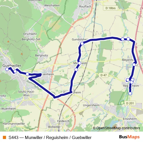 Click here to view the nearest S443 - Munwiller / Reguisheim / Guebwiller bus stop.