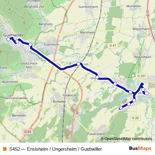 Click here to view the nearest S452 - Ensisheim / Ungersheim / Guebwiller bus stop.