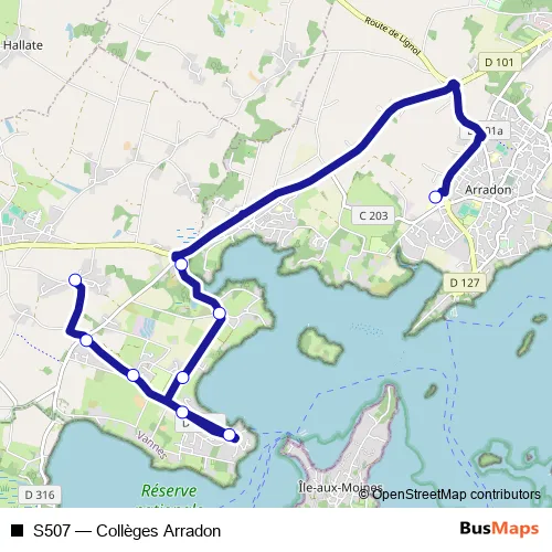 Bus S507 - Collèges Arradon in Vannes: Stops & Timetable