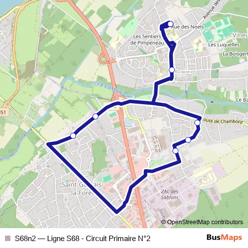 Click here to view the nearest S68n2 - Ligne S68 - Circuit Primaire N°2 bus stop.