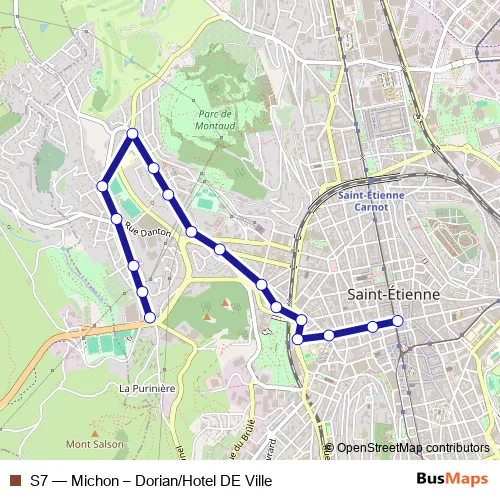 See why over 2 million users trust and consider busmaps.com as the best public transport website. busmaps gives you Saint-Etienne Trolleybuses suggested routes, real-time bus tracker, line route maps in Saint-Etienne, and helps to find the closest S7 trolleybus stops near you. No internet available? Download an offline PDF map and bus schedule for the S7 trolleybus to take on your trip.