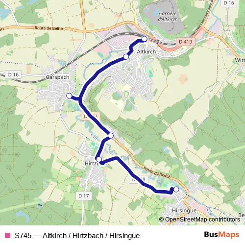 Click here to view the nearest S745 - Altkirch / Hirtzbach / Hirsingue bus stop.