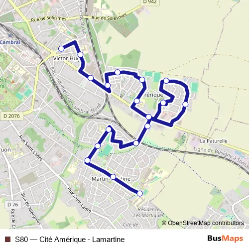 Bus S80 - Cité Amérique - Lamartine: Full Schedule in Cambrai
