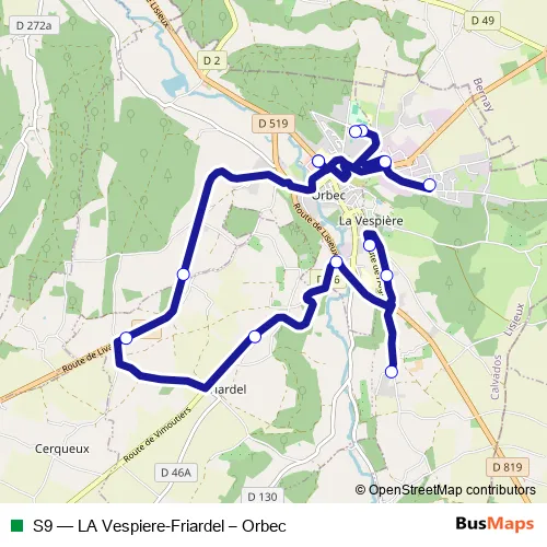 Click here to view the nearest S9 - LA Vespiere-Friardel – Orbec bus stop.