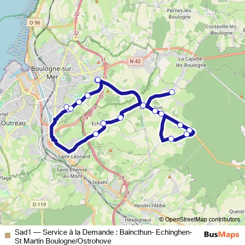 Click here to view the nearest Sad1 - Service à la Demande : Baincthun- Echinghen- St Martin Boulogne/Ostrohove bus stop.