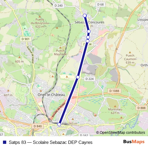Click here to view the nearest Satps 83 - Scolaire Sebazac DEP Cayres bus stop.