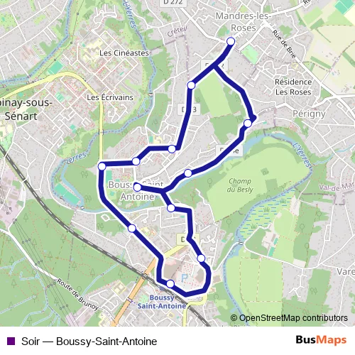 See why over 2 million users trust and consider busmaps.com as the best public transport website. busmaps gives you Boussy-Saint-Antoine Buses suggested routes, real-time bus tracker, line route maps in Boussy-Saint-Antoine, and helps to find the closest Soir bus stops near you. No internet available? Download an offline PDF map and bus schedule for the Soir bus to take on your trip.