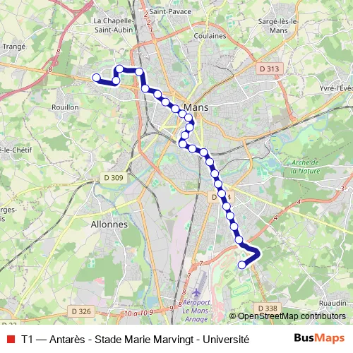Tram T1 - Antarès - Stade Marie Marvingt - Université Schedule in Le Mans