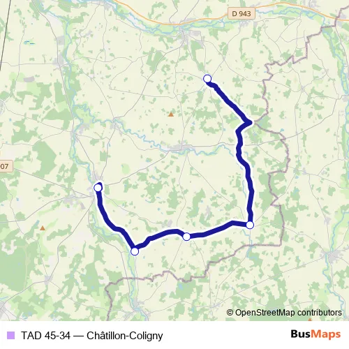 Services on the TAD 45-34 - Châtillon-Coligny bus stop at 07:00 on Monday, Tuesday, Wednesday, Thursday, Friday.