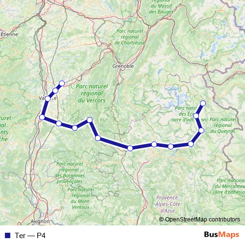 The first stop of the Ter rail route is Romans - Bourg-de-Péage and the last stop is Briançon. Ter (P4) is operational during everyday.
