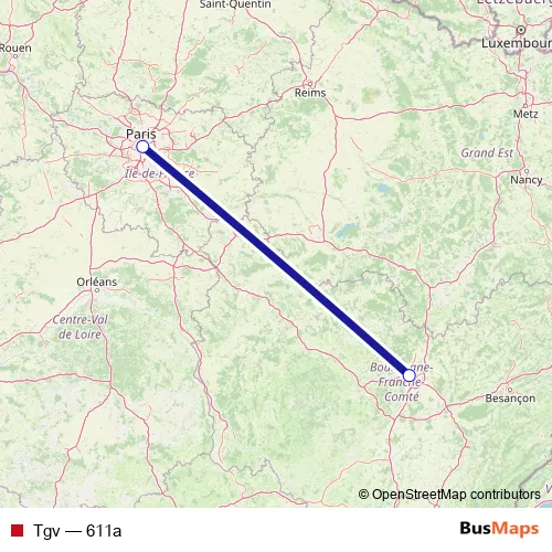 The first stop of the Tgv rail route is Dijon and the last stop is Paris Gare de Lyon. Tgv (611a) is operational during everyday.