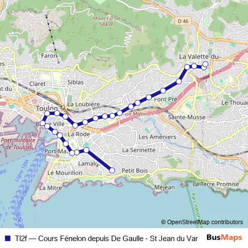 See why over 2 million users trust and consider busmaps.com as the best public transport website. busmaps gives you Toulon Buses suggested routes, real-time bus tracker, line route maps in Toulon, and helps to find the closest Tl2f bus stops near you. No internet available? Download an offline PDF map and bus schedule for the Tl2f bus to take on your trip.