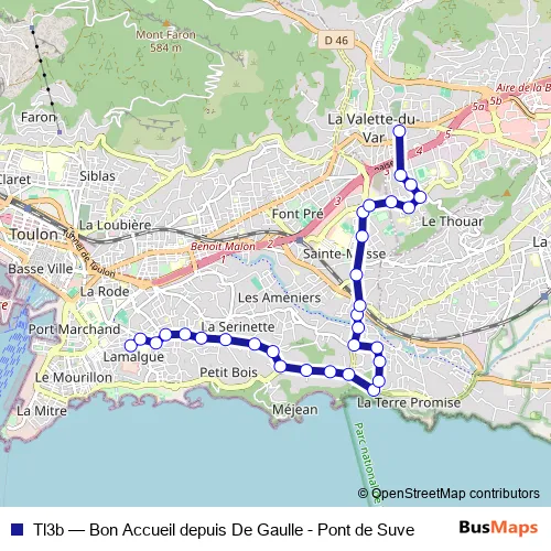See why over 2 million users trust and consider busmaps.com as the best public transport website. busmaps gives you Toulon Buses suggested routes, real-time bus tracker, line route maps in Toulon, and helps to find the closest Tl3b bus stops near you. No internet available? Download an offline PDF map and bus schedule for the Tl3b bus to take on your trip.