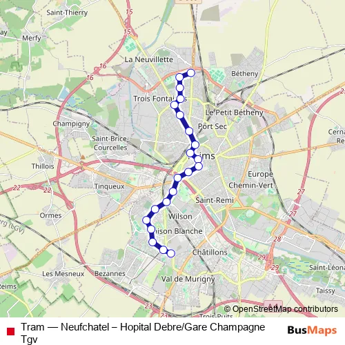 Metro Tram - Neufchatel – Hopital Debre/Gare Champagne Tgv in Reims: Stops & Timetable