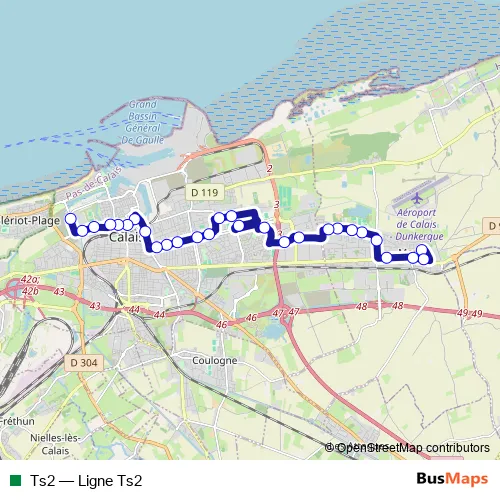 See why over 2 million users trust and consider busmaps.com as the best public transport website. busmaps gives you Calais Buses suggested routes, real-time bus tracker, line route maps in Calais, and helps to find the closest Ts2 bus stops near you. No internet available? Download an offline PDF map and bus schedule for the Ts2 bus to take on your trip.