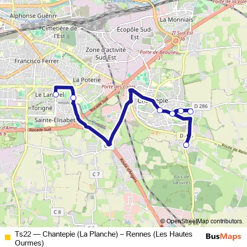 Bus Ts22 - Chantepie (La Planche) – Rennes (Les Hautes Ourmes): Full Schedule in Rennes
