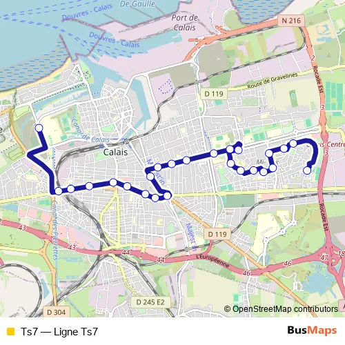 See why over 2 million users trust and consider busmaps.com as the best public transport website. busmaps gives you Calais Buses suggested routes, real-time bus tracker, line route maps in Calais, and helps to find the closest Ts7 bus stops near you. No internet available? Download an offline PDF map and bus schedule for the Ts7 bus to take on your trip.