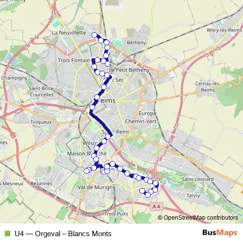 Bus U4 - Orgeval – Blancs Monts Schedule in Reims
