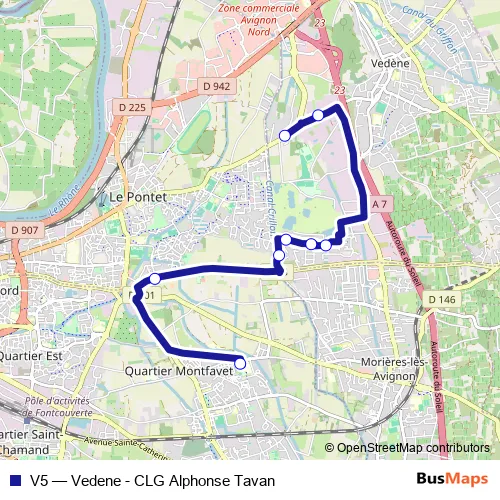 Bus V5 - Vedene - CLG Alphonse Tavan in Avignon: Stops & Timetable