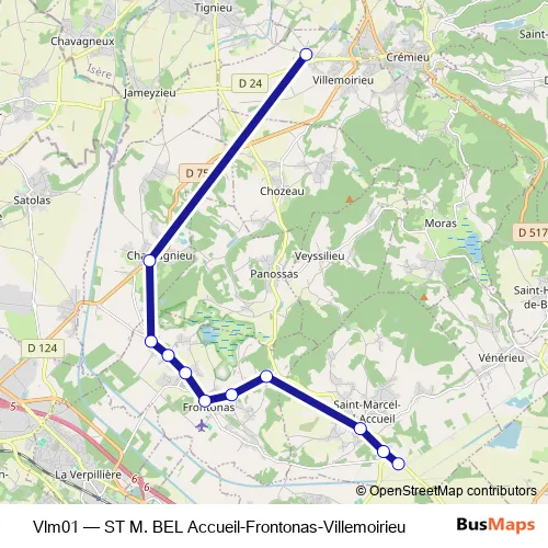 Click here to view the nearest Vlm01 - ST M. BEL Accueil-Frontonas-Villemoirieu bus stop.