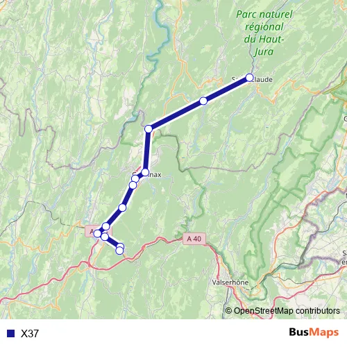 The first stop of the X37 bus route is Saint-Claude and the last stop is Nantua. X37 is operational during everyday.