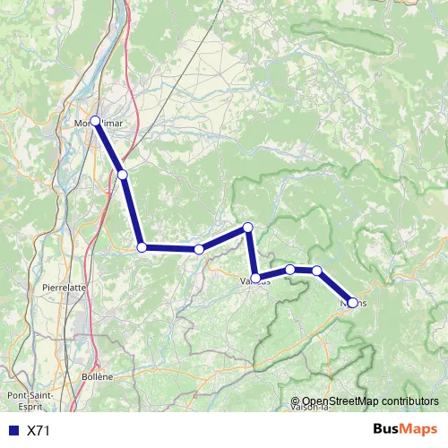 See why over 2 million users trust and consider busmaps.com as the best public transport website. busmaps gives you Nyons Buses suggested routes, real-time bus tracker, line route maps in Nyons, and helps to find the closest X71 bus stops near you. No internet available? Download an offline PDF map and bus schedule for the X71 bus to take on your trip.