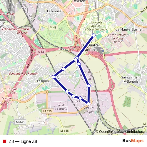 See why over 2 million users trust and consider busmaps.com as the best public transport website. busmaps gives you Lille Buses suggested routes, real-time bus tracker, line route maps in Lille, and helps to find the closest Z8 bus stops near you. No internet available? Download an offline PDF map and bus schedule for the Z8 bus to take on your trip.
