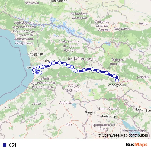 The first stop of the 854 rail route is Tbilisi and the last stop is