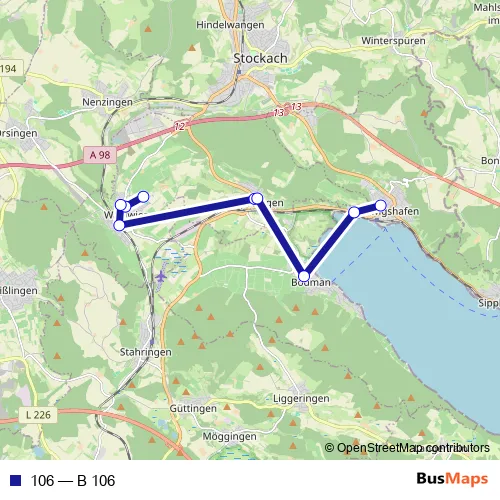 See why over 2 million users trust and consider busmaps.com as the best public transport website. busmaps gives you Bodman-Ludwigshafen Buses suggested routes, real-time bus tracker, line route maps in Bodman-Ludwigshafen, and helps to find the closest 106 bus stops near you. No internet available? Download an offline PDF map and bus schedule for the 106 bus to take on your trip.