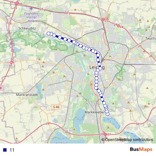 See why over 2 million users trust and consider busmaps.com as the best public transport website. busmaps gives you Leipzig Trams suggested routes, real-time bus tracker, line route maps in Leipzig, and helps to find the closest 11 tram stops near you. No internet available? Download an offline PDF map and bus schedule for the 11 tram to take on your trip.