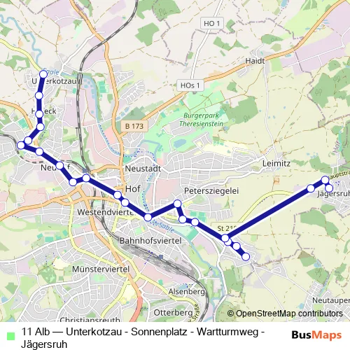 See why over 2 million users trust and consider busmaps.com as the best public transport website. busmaps gives you Hof Buses suggested routes, real-time bus tracker, line route maps in Hof, and helps to find the closest 11 Alb bus stops near you. No internet available? Download an offline PDF map and bus schedule for the 11 Alb bus to take on your trip.