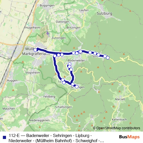 Bus 112-E - Badenweiler - Sehringen - Lipburg - Niederweiler - (Müllheim Bahnhof) - Schweighof - Badenweiler in Badenweiler: Stops & Timetable