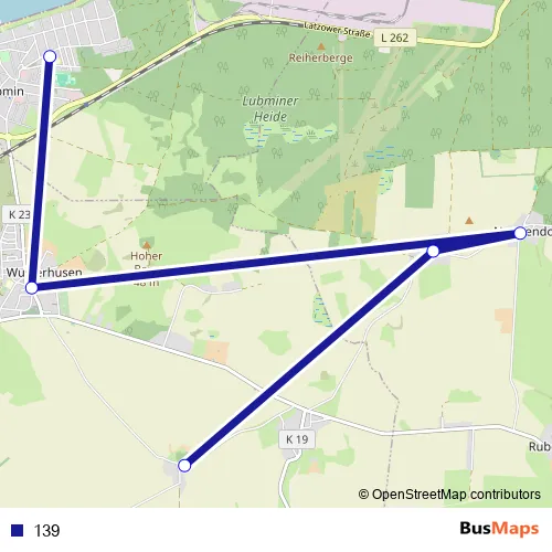 The first stop of the 139 bus route is Konerow and the last stop is Lubmin Schule. 139 is operational during on weekdays.
