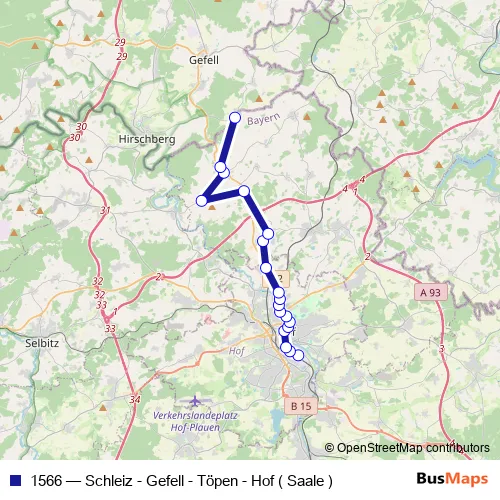 Click here to view the nearest 1566 - Schleiz - Gefell - Töpen - Hof ( Saale ) bus stop.