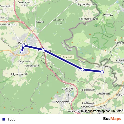 The first stop of the 1583 bus route is Rehau, Gutenbergschule and the last stop is Neuhausen bei Rehau. 1583 is operational during on weekdays.